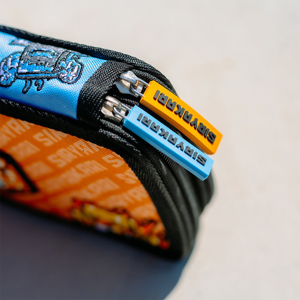 Penál má pevné zipy s velkými taháčky pro snadnou manipulaci.