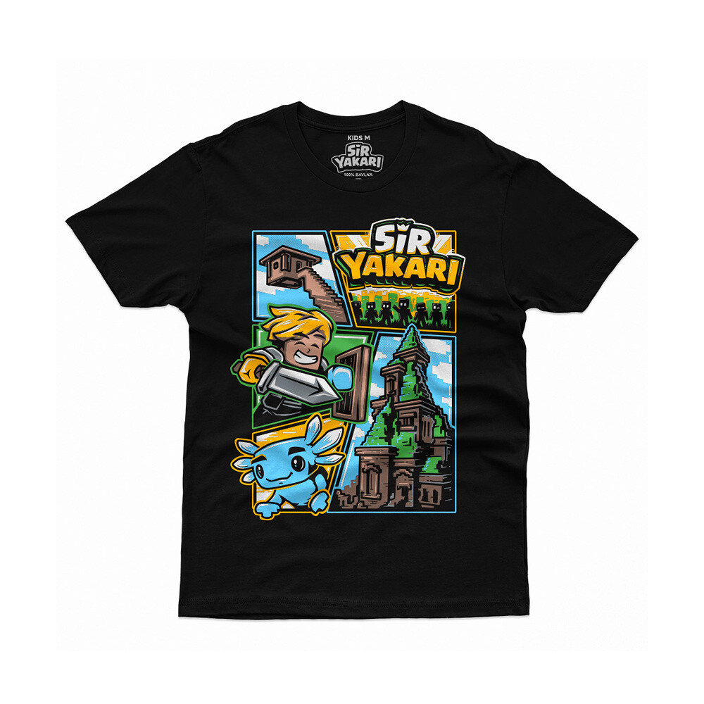 Dětské tričko SirYakari Epic z komiksové kolekce inspirované Minecraftem přináší to nejlepší z oblíbených herních sérií. Na tričku jsou vyobrazeny ikonické Minecraft stavby vytvořené Sirem Yakarim. Skvělý kousek pro všechny mladé fanoušky, kteří chtějí nosit část jeho herního světa každý den.